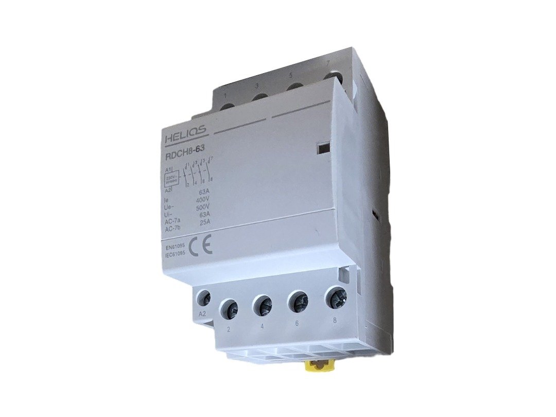 RDCH8 series AC contactors are mainly suitable for circuits with 50Hz or 60Hz, rated working voltage up to 400V, and rated working current up to 63A. They are used to control household appliances and low inductive loads, and can also control household motor loads. The control power should be reduced accordingly. small. This product can be used in family hotels, apartments and other places to realize automation. Can also be used for other appliances. This product complies with IEC61095 standard