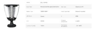 ESL-15Pro is a Solar Light for outdoor lighting selection with a monocrystalline solar panel that can provide you high visual comfort high yield optics ,its lighting glow is healthy.