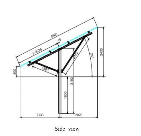 1 Pole 2 Portrait Steel Mounting Structure for Panels 2.28×1.13m (Complete System)